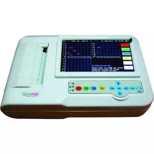 The Medicaid Spiromax Portable Spirometer PFT Machine is a state-of-the-art diagnostic device used to assess lung function in patients. The device has a high-resolution color TFT screen that displays accurate readings of spirometry tests in real time. Additionally, the device incorporates a thermal array printer that allows clinicians to easily print test results for immediate analysis.