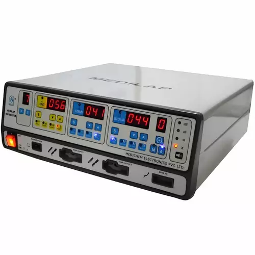 Medilap 400 Dexter is a high-frequency electrosurgical machine designed for safe, precise, and bloodless cutting and coagulation of soft tissues in procedures such as wart removal, mole excision, cyst removal, skin tag cutting, polyp removal, biopsy, and minor ENT, gynecology, and dermatology surgeries.
